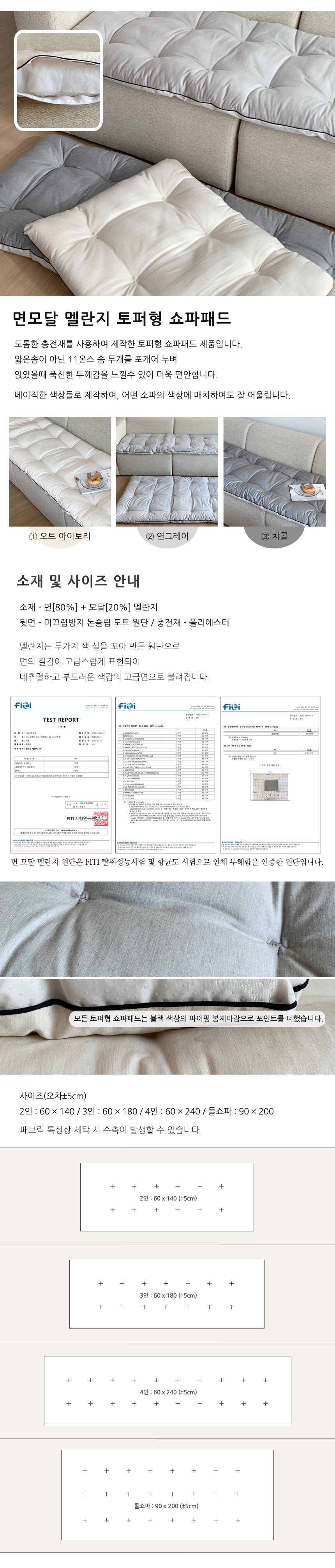 순면 모달 멜란지 토퍼형 쇼파패드