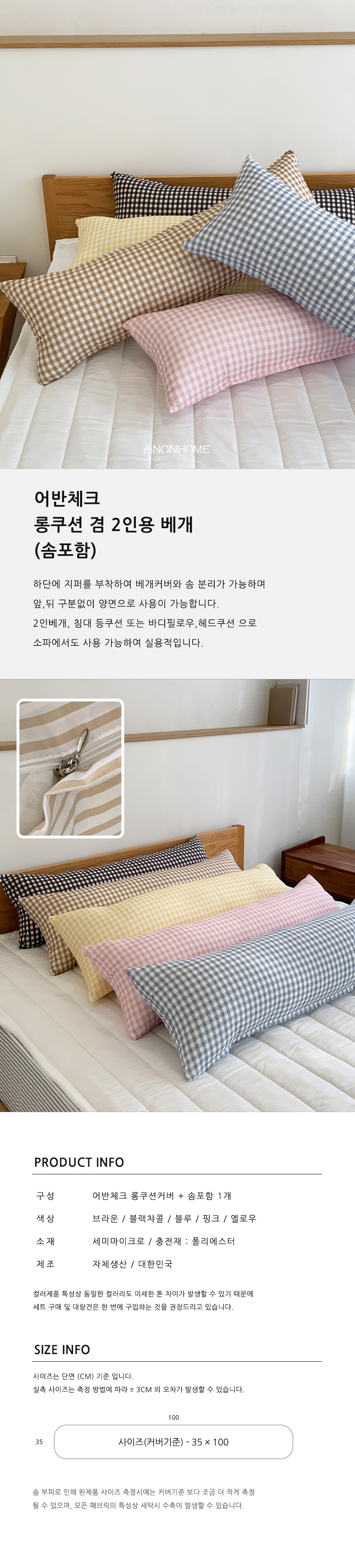 어반체크 롱쿠션 바디필로우 (솜포함) - 커버분리형