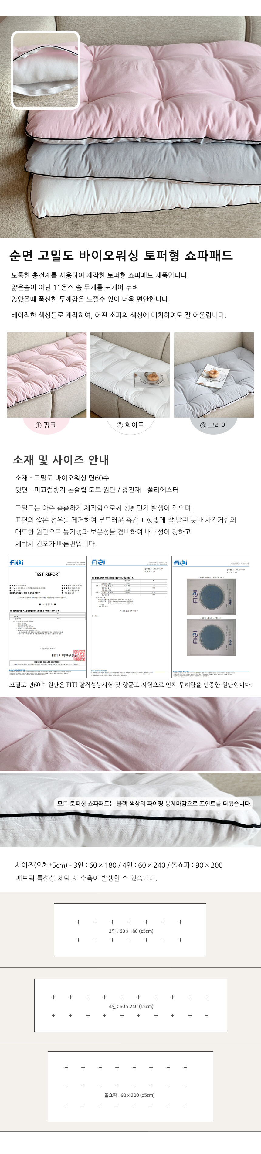 순면 60수 고밀도 바이오워싱 토퍼형 쇼파패드