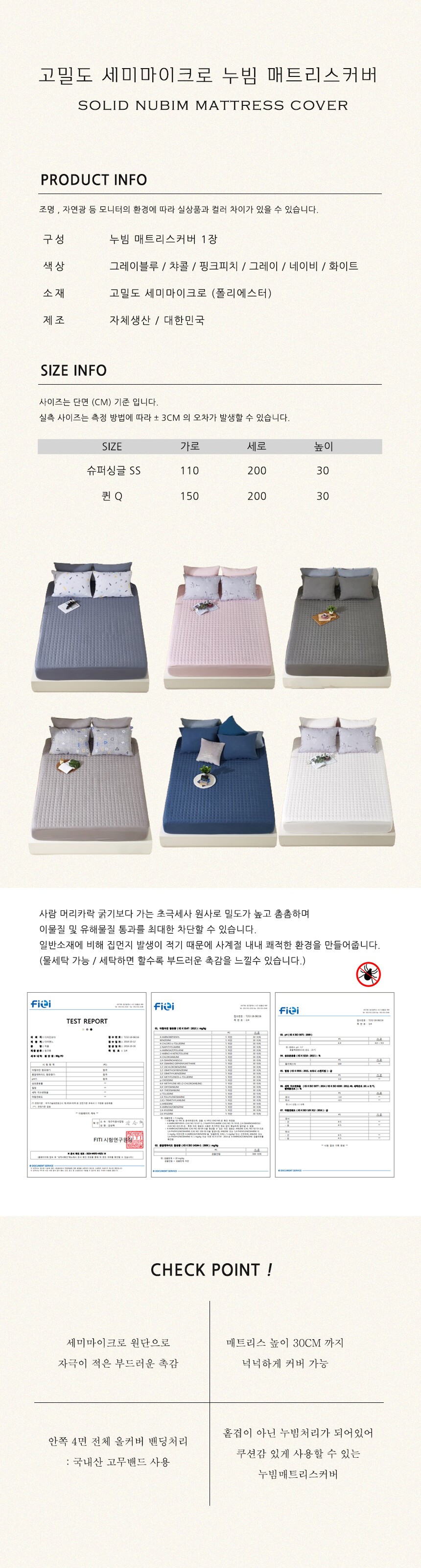 고밀도 마이크로 솔리드 누빔 매트리스커버 - 6컬러