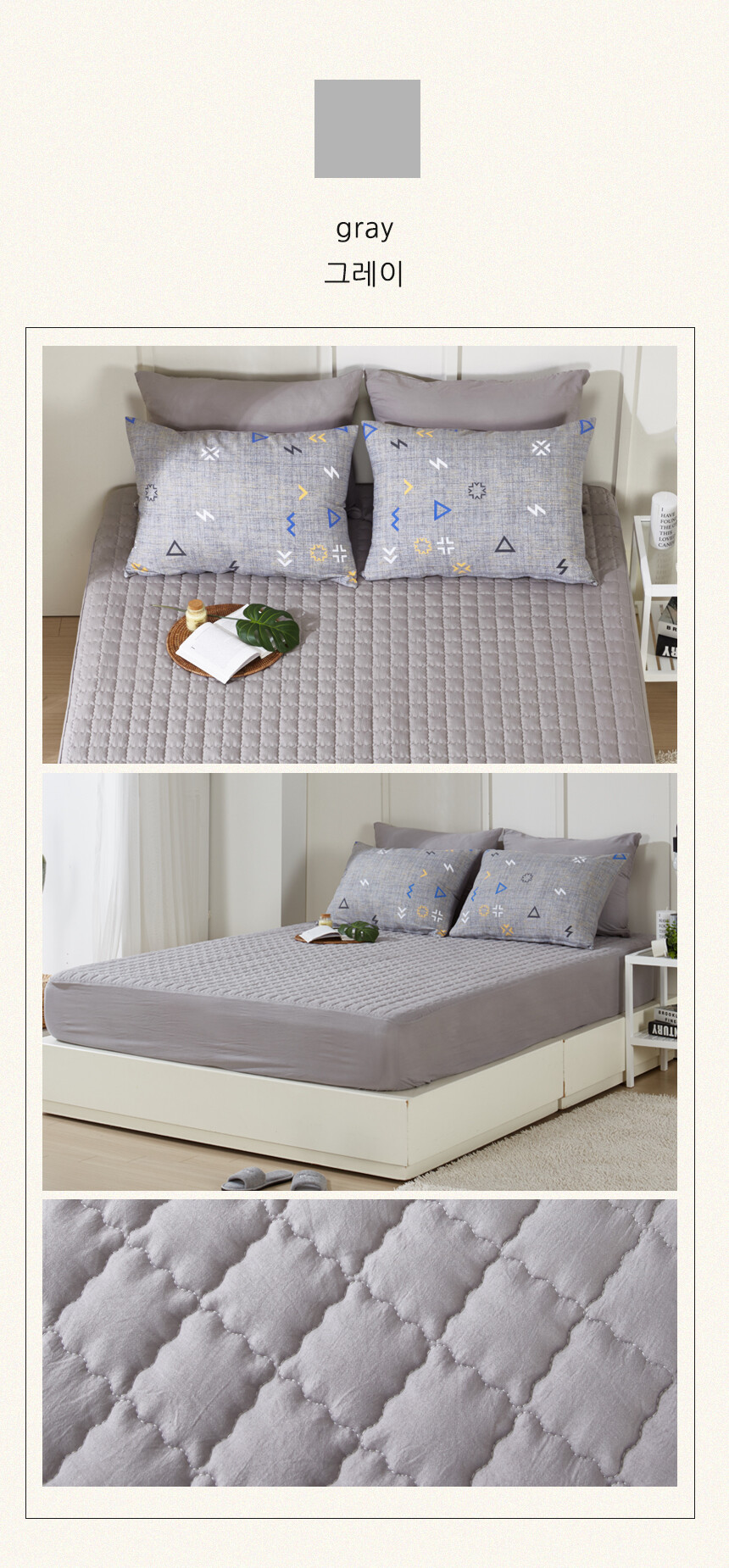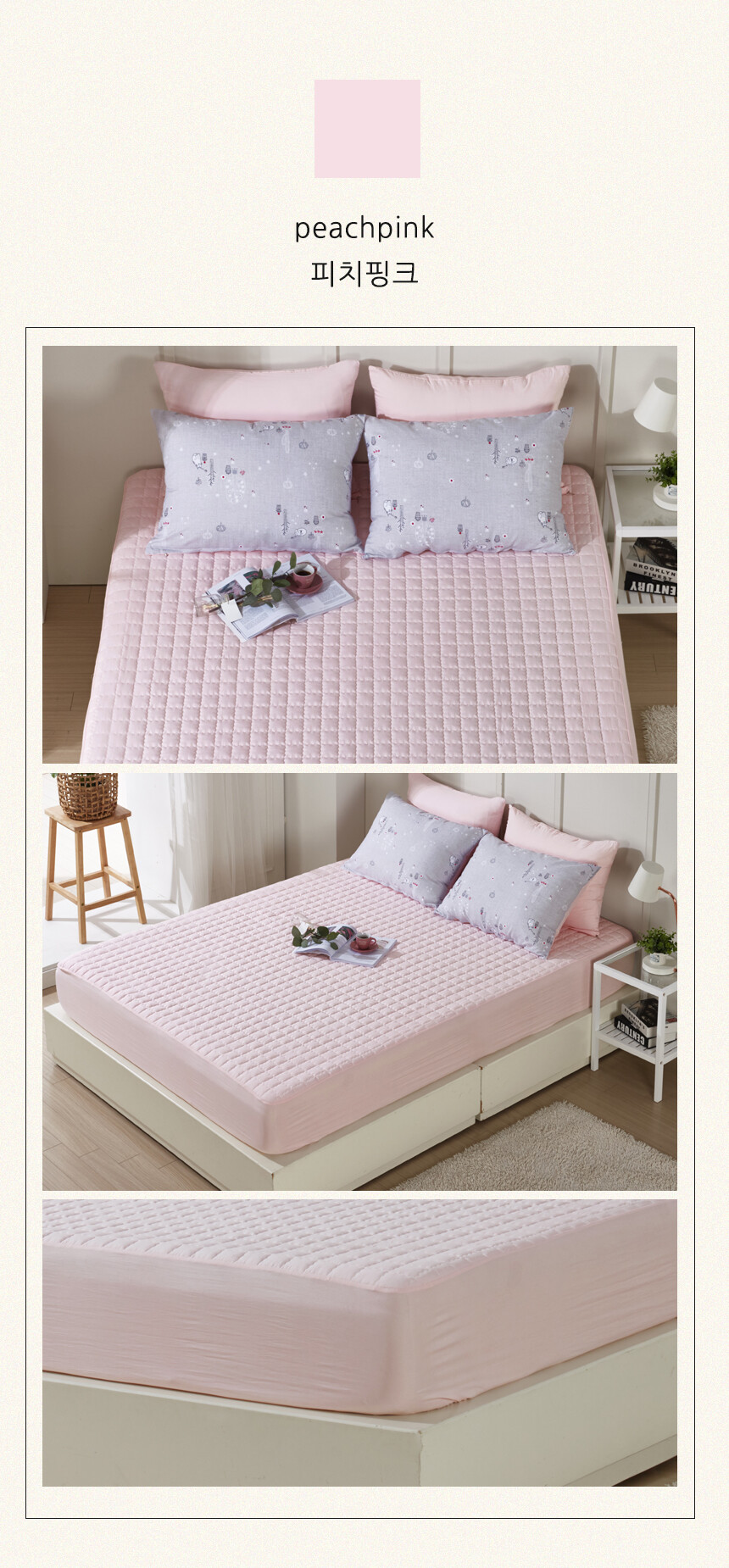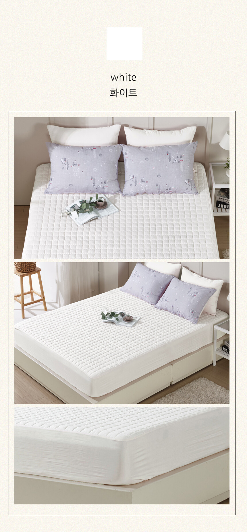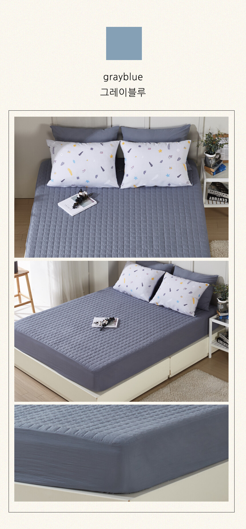 홑겹이 아닌 앞면 누빔처리로 쿠션감 있게 사용할 수 있는 누빔 매트리스커버 입니다.